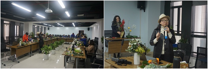 活動現場,特邀日本華道草月流的花道師徐珍為大家講授花藝,詳細講解了插花花材的識別、色彩的搭配、插花特點等方面的知識,并現場進行了插花展示,指導大家親自實踐插花。