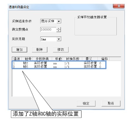?3) 增加Z軸的實際位置采樣為通道1,如圖: