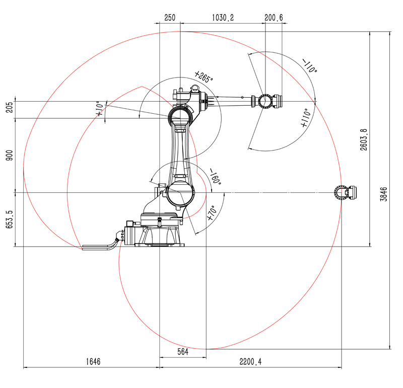 工作范圍寬廣靈活,各軸運動范圍大,臂展2200mm,可以覆蓋眾多工作場景,手腕結構緊湊,可以在狹窄空間內靈活轉動。