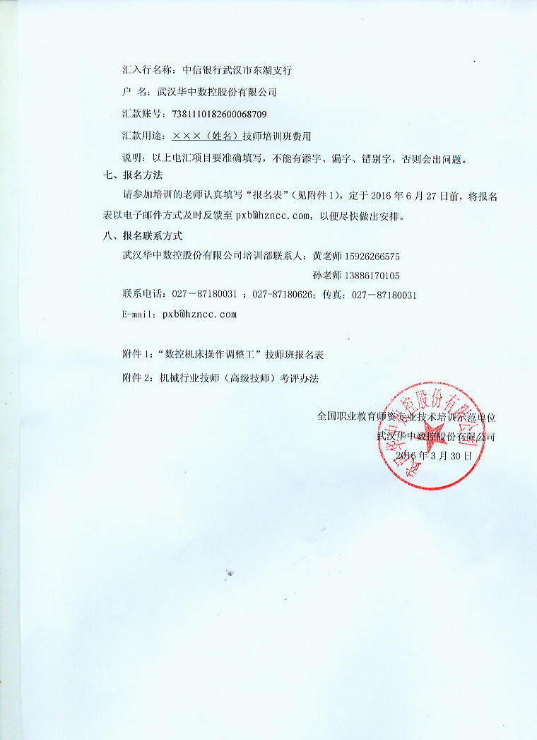 武漢華中數(shù)控股份有限公司培訓(xùn)部聯(lián)系人:黃老師15926266576