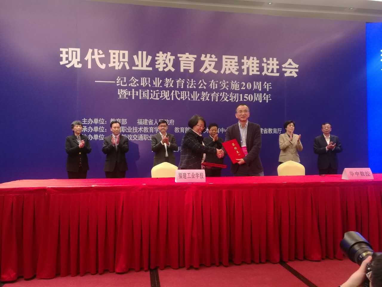 2016年12月12日,教育部與福建省人民政府在福州聯(lián)合召開現(xiàn)代職業(yè)教育發(fā)展推進(jìn)會,教育部黨組書記、部長陳寶生出席會議并講話,福建省委副書記、省長于偉國在會上致辭。在陳寶生部長等領(lǐng)導(dǎo)的見證下,華中數(shù)控正式成為教育部確定的職業(yè)院校智能制造領(lǐng)域唯一戰(zhàn)略合作單位,并且與福建工業(yè)學(xué)校等職業(yè)院校簽訂校企合作協(xié)議。