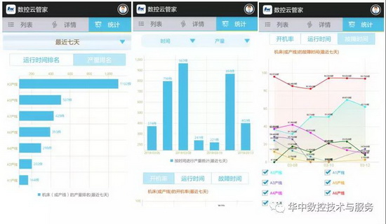 ? ? ? 目前,華中數(shù)控已在全國部署iNC Cloud云管家服務,通過“云管家”app和web網(wǎng)頁,可實時查看車間每條生產(chǎn)線中機床的當前運行狀態(tài),記錄了每個機床的今日產(chǎn)量,為用戶提供車間、機床相關(guān)利用率、開機率、運行率、利用率、加工件數(shù)和報警次數(shù)等統(tǒng)計報表,用戶可依據(jù)機床使用率等數(shù)據(jù),合理排序或調(diào)整每臺機床加工零件的工序,可大幅度提高產(chǎn)品加工效率,節(jié)約人力、物力資源。