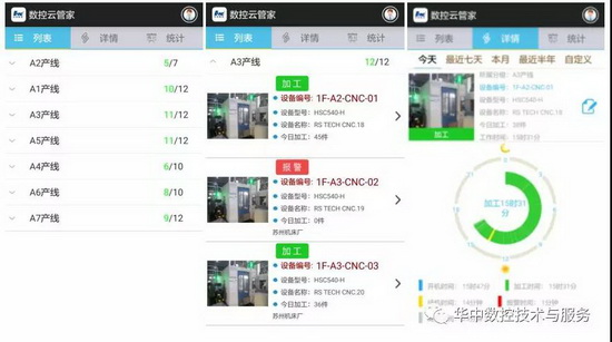 ? ? ? 華中數(shù)控云管家在蘇州勝利精密智能制造車間全面部署,iNC Cloud通過對機床7×24小時不間斷采集到的數(shù)據(jù)進行統(tǒng)計和分析,形成應用示范。