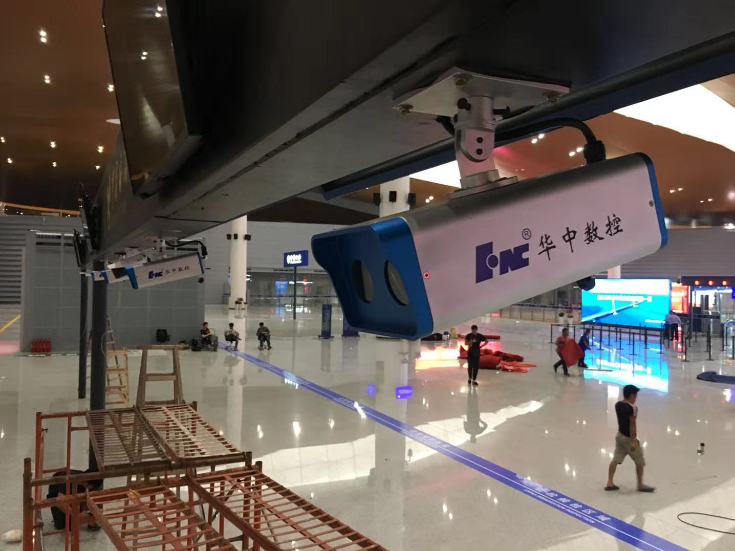 華中數控“紅外熱像儀”通過被檢測人流經過檢測區域,不到1秒就能檢測出人體溫度。