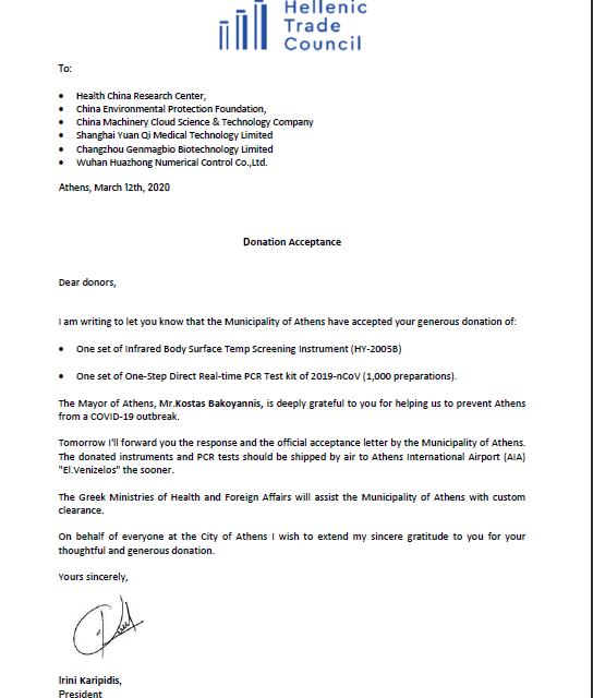 當(dāng)前,新冠肺炎疫情正在全球多個(gè)國(guó)家蔓延擴(kuò)散。截止3月20日,希臘共和國(guó)累計(jì)確診新冠肺炎病例增加到近500例。面對(duì)新冠疫情快速蔓延,希臘共和國(guó)總理米佐塔基斯稱“希臘處于戰(zhàn)爭(zhēng)狀態(tài),但我們必將獲勝”。他強(qiáng)調(diào)當(dāng)前希臘政府的首要任務(wù)是“挽救生命”,希臘共和國(guó)政府已經(jīng)出臺(tái)一系列措施進(jìn)行防疫抗疫。3月20日,在中華環(huán)境保護(hù)基金會(huì)的協(xié)調(diào)下,武漢華中數(shù)控股份有限公司(簡(jiǎn)稱華中數(shù)控)通過希臘共和國(guó)駐中華人民共和國(guó)大使館,向希臘共和國(guó)捐贈(zèng)一臺(tái)HY-2005B紅外智能測(cè)溫儀,支援希臘共和國(guó)政府開展防疫抗疫工作。為此,雅典市市長(zhǎng)專門發(fā)來(lái)感謝信,感謝華中數(shù)控為希臘疫情防控提供幫助,據(jù)悉,本次捐贈(zèng)的紅外智能測(cè)溫儀將用于雅典國(guó)際機(jī)場(chǎng)海關(guān)旅客的體溫檢測(cè)。