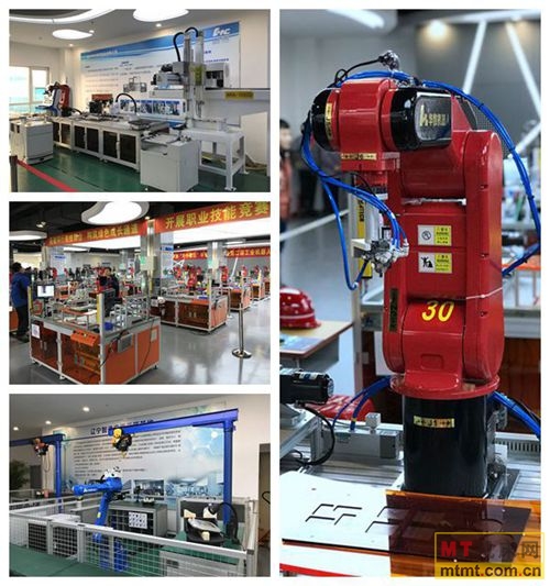 ? ? ?熊總在采訪中講到華中數(shù)控(遼寧)智能制造應(yīng)用示范基地是目前東北地區(qū)規(guī)模最大、設(shè)備最為齊全的工業(yè)機器人實訓(xùn)基地?;嘏溆忻襟w教室、實訓(xùn)室、技能訓(xùn)練中心等教學(xué)場所,占地面積近2萬平方米。是由武漢華中數(shù)控股份有限公司與遼寧東升智能產(chǎn)業(yè)發(fā)展有限公司共同出資打造。引進(jìn)了工業(yè)機器人操調(diào)實訓(xùn)平臺、工業(yè)機器人機電一體化拆裝工作站、智能制造生產(chǎn)線、五軸加工中心以及3D打印機等先進(jìn)智能制造設(shè)備60余套,可同時容納300人進(jìn)行實訓(xùn)。為此次競賽提供了充足條件。