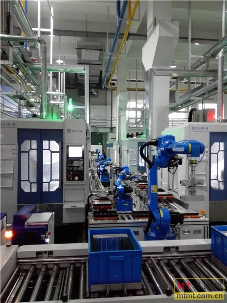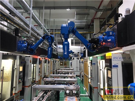 ??華中數控與蘇州華數機器人有限公司參與建設的“便攜式電子產品結構模組精密加工智能制造新模式”是2016年工信部智能制造綜合標準化與新模式應用項目,是3C制造領域華東地區第一條智能制造示范線,主要加工國際知名品牌筆記本電腦等3C產品。該項目的實施過程,充分體現了“三國六化一核心”的特點(三國:國產智能裝備、國產數控系統、國產工業控制軟件;六化,加工過程自動化、制造資源物聯化、制造系統數字化、質量控制實時化、制造環境綠色化;一核心,大數據云平臺)。