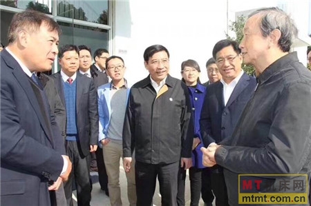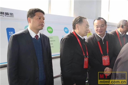 ??2017年11月23日,時任中央政治局委員、國務院副總理馬凱與工信部部長苗圩、中國工程院院長周濟率領國家制造強國建設領導小組成員,參觀調研了由華中數控和勝利精密共建的國家智能制造示范工廠。
