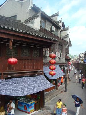 傍晚時(shí)分,導(dǎo)游領(lǐng)著我們初識(shí)美麗的古鎮(zhèn)。夜晚的古鎮(zhèn)顯得分外的熱鬧和迷人。在古鎮(zhèn)的街上走走,熱鬧一下,在沱江里放放蓮花燈,浪漫一下,在沱江邊的酒吧坐坐,小資一下,感覺還真不錯(cuò)。