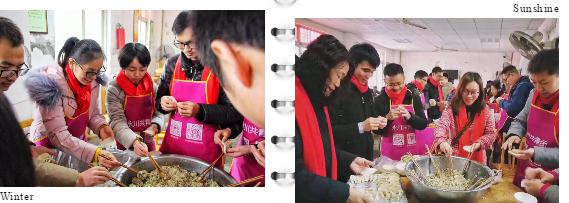 贈衣活動結束后,大家一起包餃子做午飯。在包餃子的過程中,大家互相學習;餃子下鍋煮熟后,老人們和志愿者們都品嘗到了熱騰騰的,充滿幸福味道的餃子。
