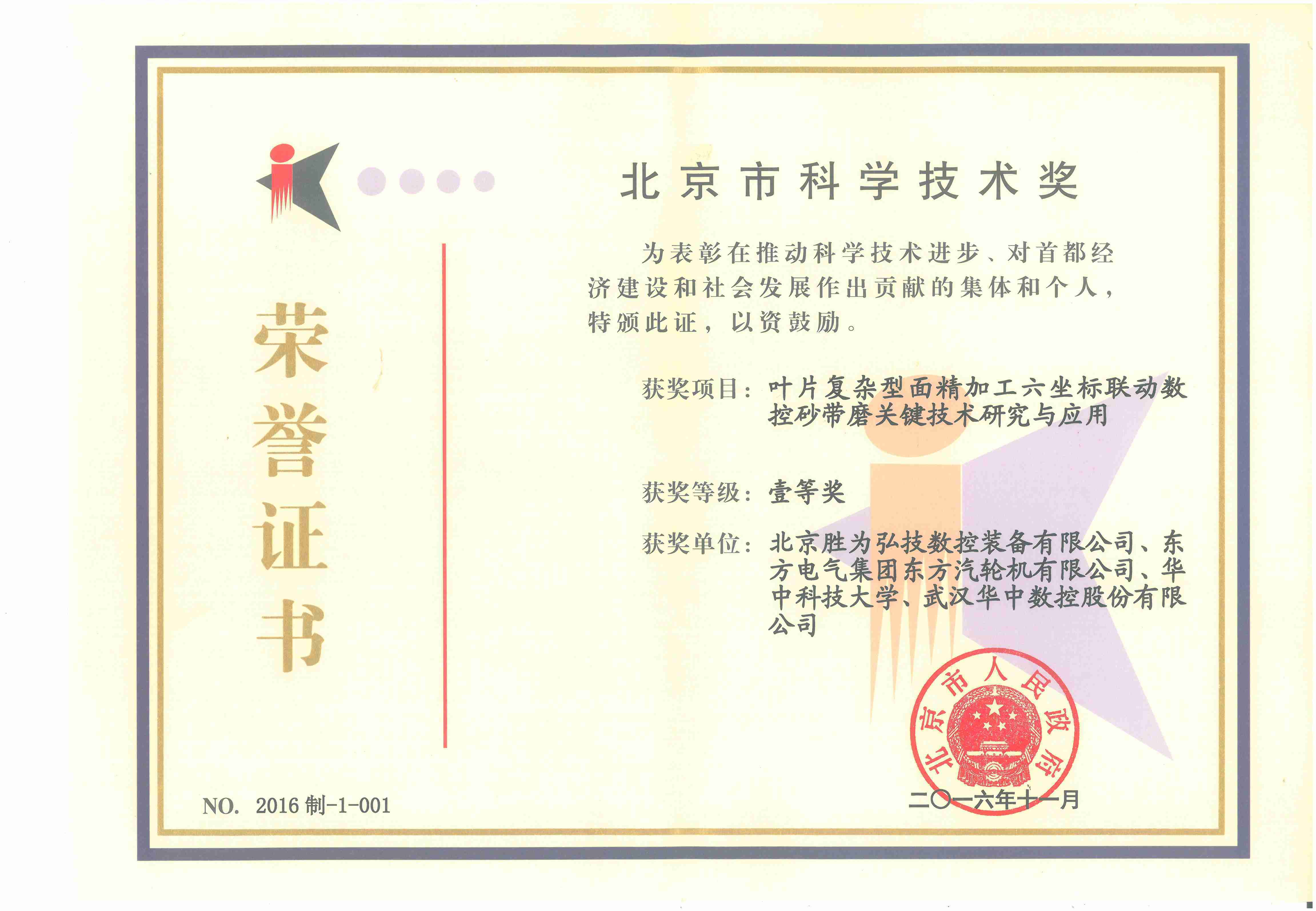 北京市科學技術一等獎:葉片復雜型面精加工六坐標聯(lián)動數控砂帶磨關鍵技術研究與應用