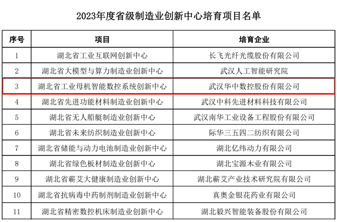 湖北新一批省級制造業創新中心培育名單公布,華中數控在列