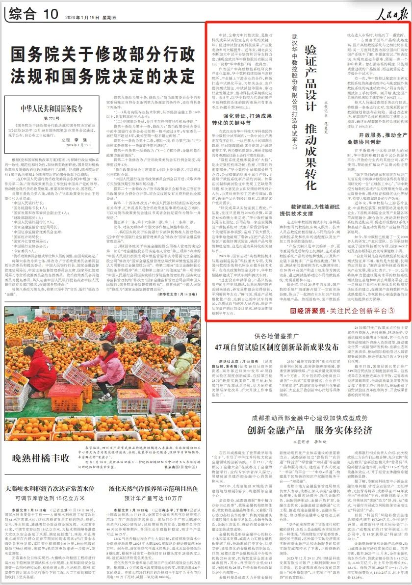 《人民日報》聚焦武漢華中數控股份有限公司打造中試平臺 驗證產品設計 推動...